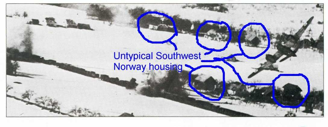 I am from Stavanger in the Southwest. The typical houses of the area around Nærbø and Jæren would be more low and drawn out, while some of the houses in that pic seem to be quite large, more like they'd be in the East of Norway. Nordlandshouses are higher and more narrow as Smithy said, but we're talking about 1000 km off when it comes to location. Another thing is the snow. While 44/45 maybe was a cold winter you'll seldom see snow covering the area like you do in that picture. Once in a while, yes, but it is/was rare. Admittedly it WAS colder with more lasting snow in the beginning/mid last century. Compare the pic to what you see in this one showing IIRC 16 Sqn SAAF Beaufighters busting trains etc in Yugoslavia early 1945. http://img.photobucket.com/albums/10...d/ad882bfc.jpg What are your thoughts? Regards, Kyrre Harstad, Norway. |