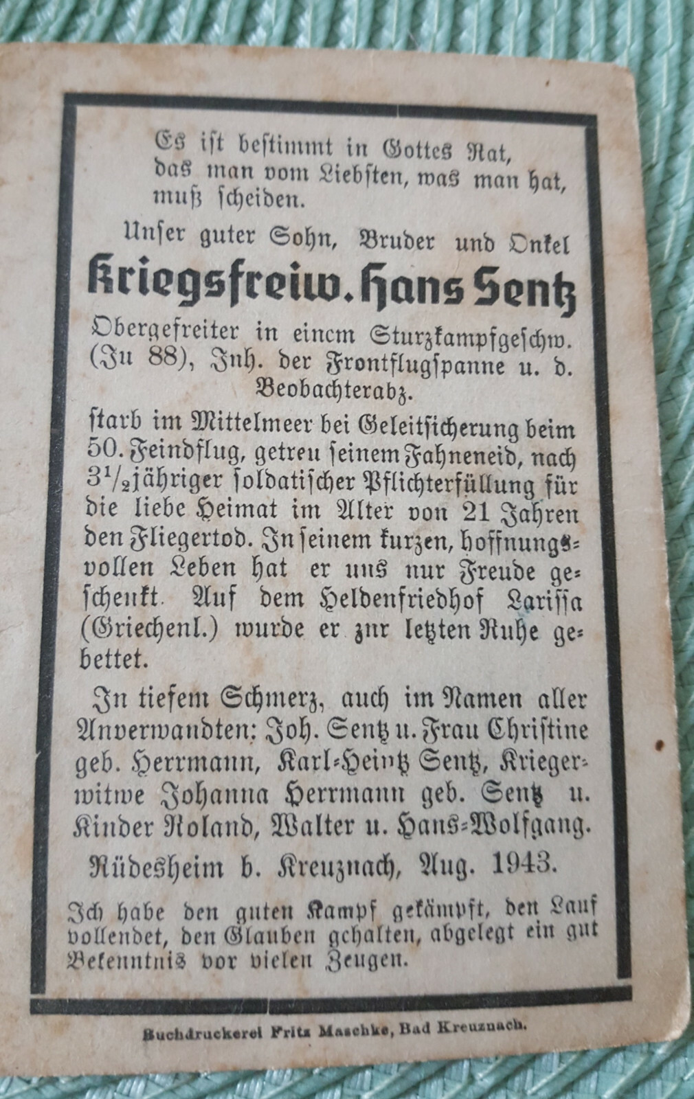 F Lt Kubeil, Alfred, tot Kb Ogfr Sentz, Hans, tot Bf Ofw Freek, Emil, tot Bm Gefr Bertelt, Anton, tot Matti |