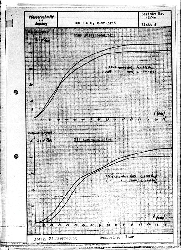 ![]() There are more data about roll rates of Bf 110 (and Me 210) in Bericht Nr. 54/40. |