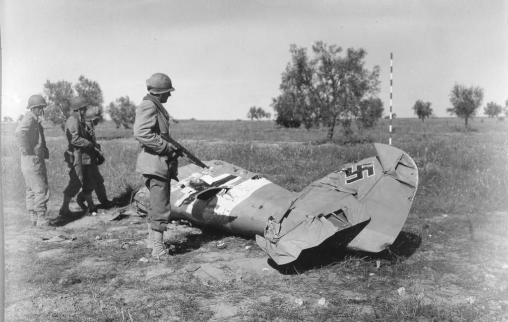 Army signal Corps photo, "A German plane shot down at Ma??iassy, Tunisia 3/23/43 North Africa"