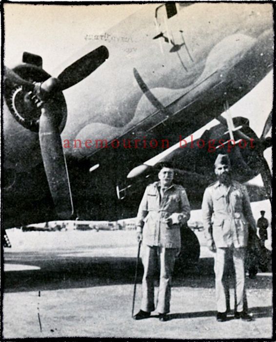 "Mr Komninos Pyromaglou with Stavros Metaxas before their flight to Greece after The Caserta Agreement."