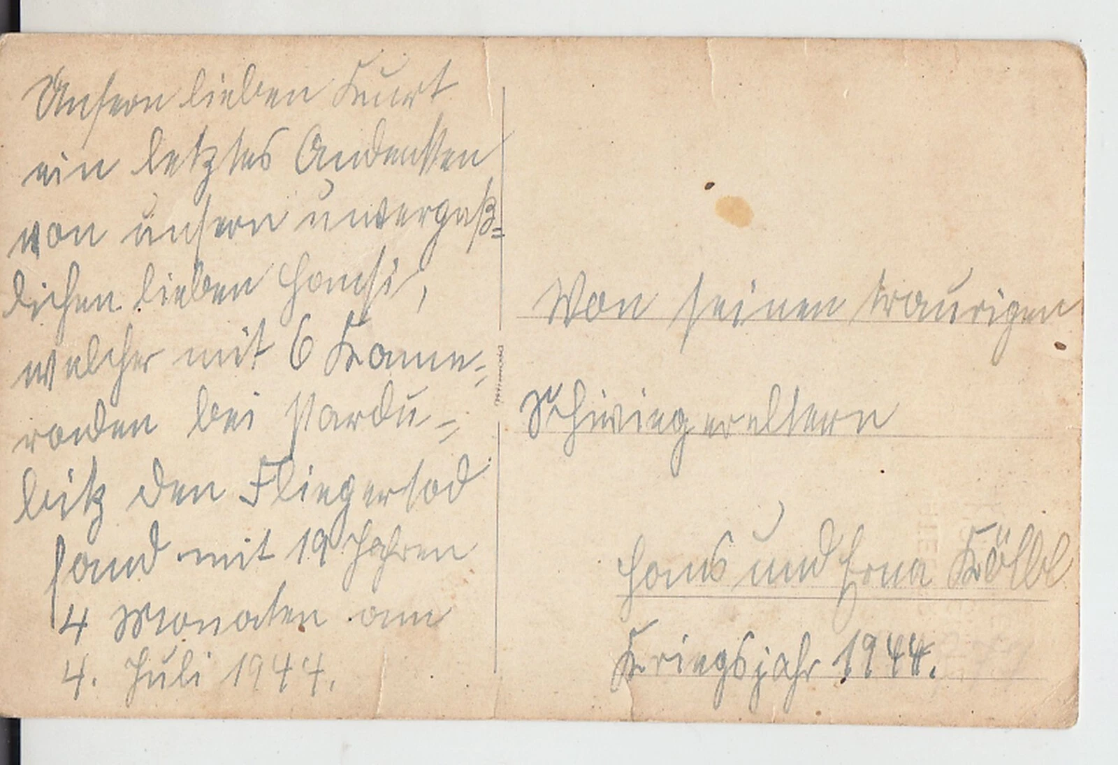 this is a card with the portrait of "Hansi", which was written by the parents-in-law (Schwiegereltern in German) of Hans, the parents of his wife, named Hans and Erna Kölbl and sent to Kurt, probably a friend or a relative of the family Kölbl. So the surname of the son-in-law Hans was certainly not Kölbl. Regards Leo |