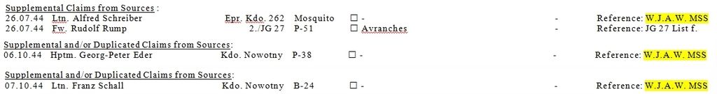 Re: Luftwaffe claim Reference: W.J.A.W. MSS